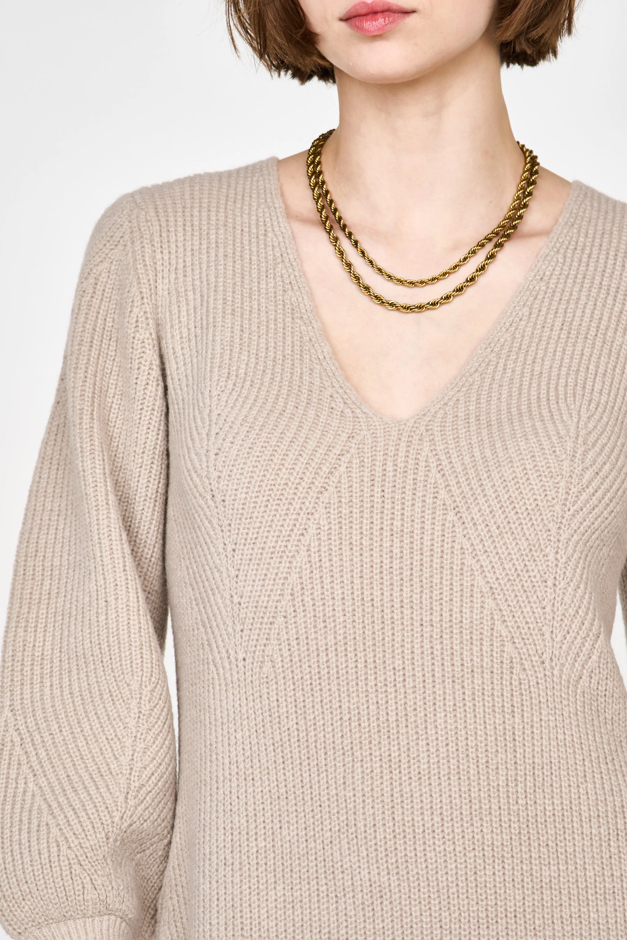 • Deep V neckline