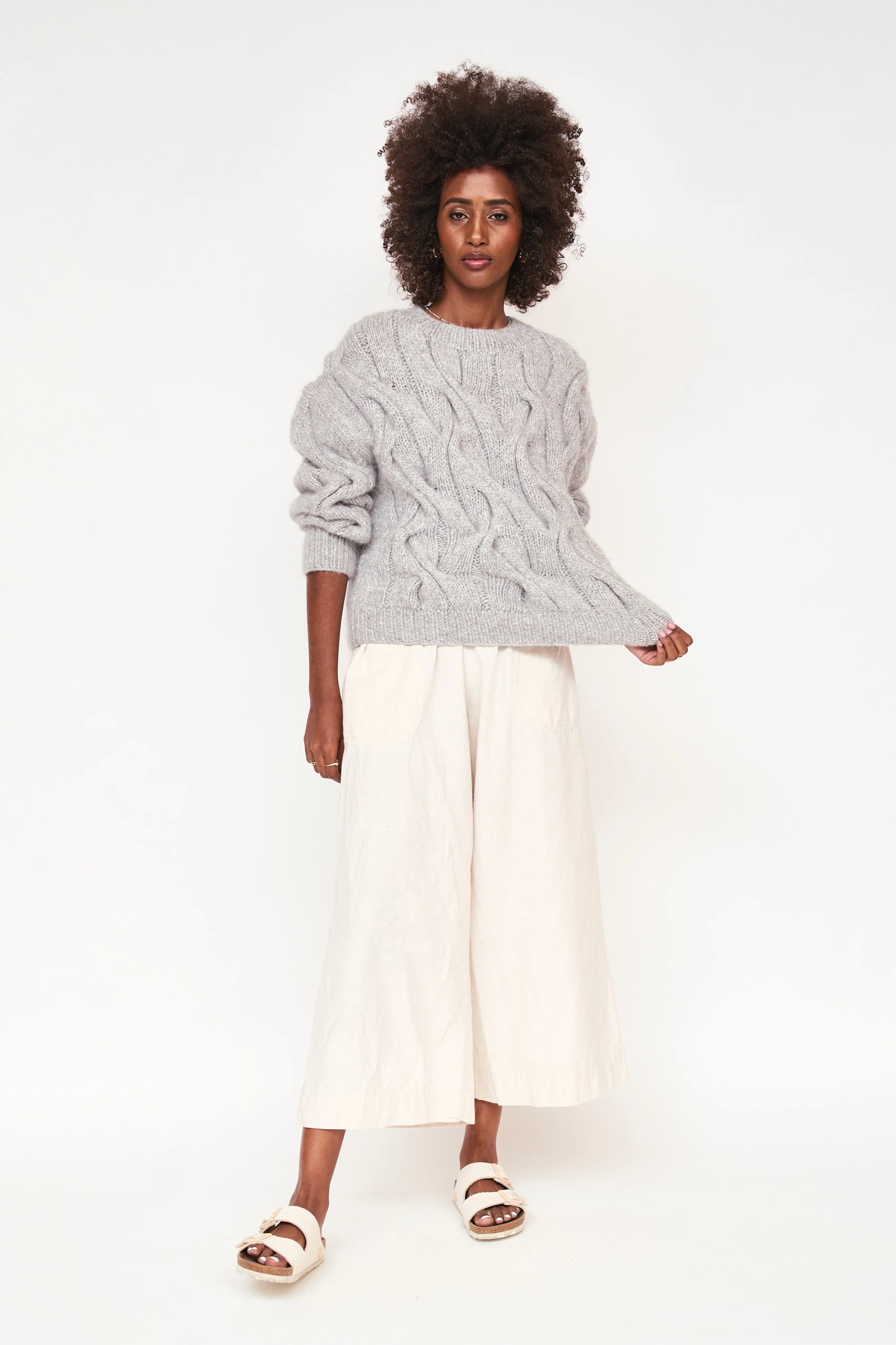hand knit by women in peru, this is one of the most special pieces we’ve ever made. throw this luxe and cozy sweater over jeans or a dress??this is a winter essential.
