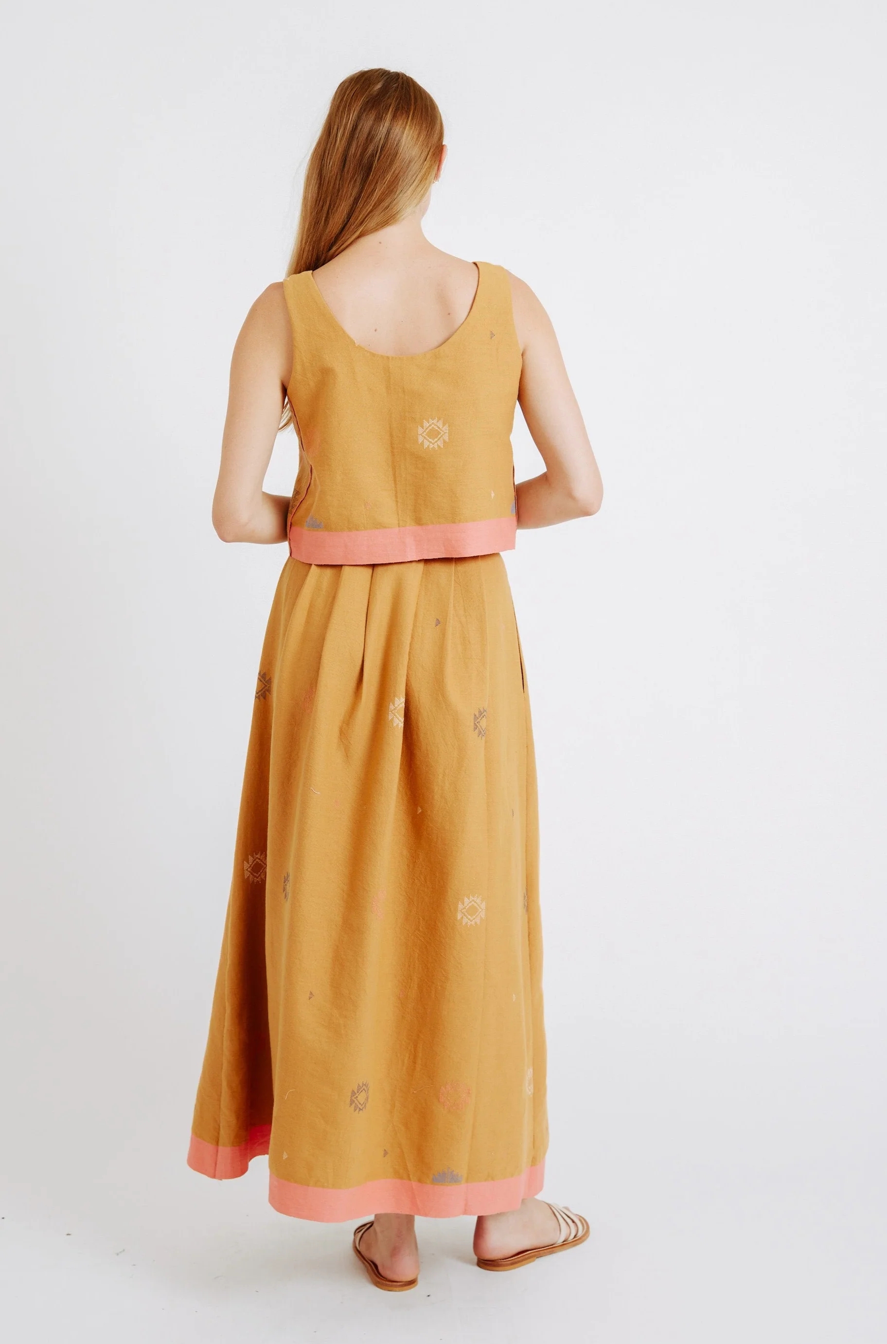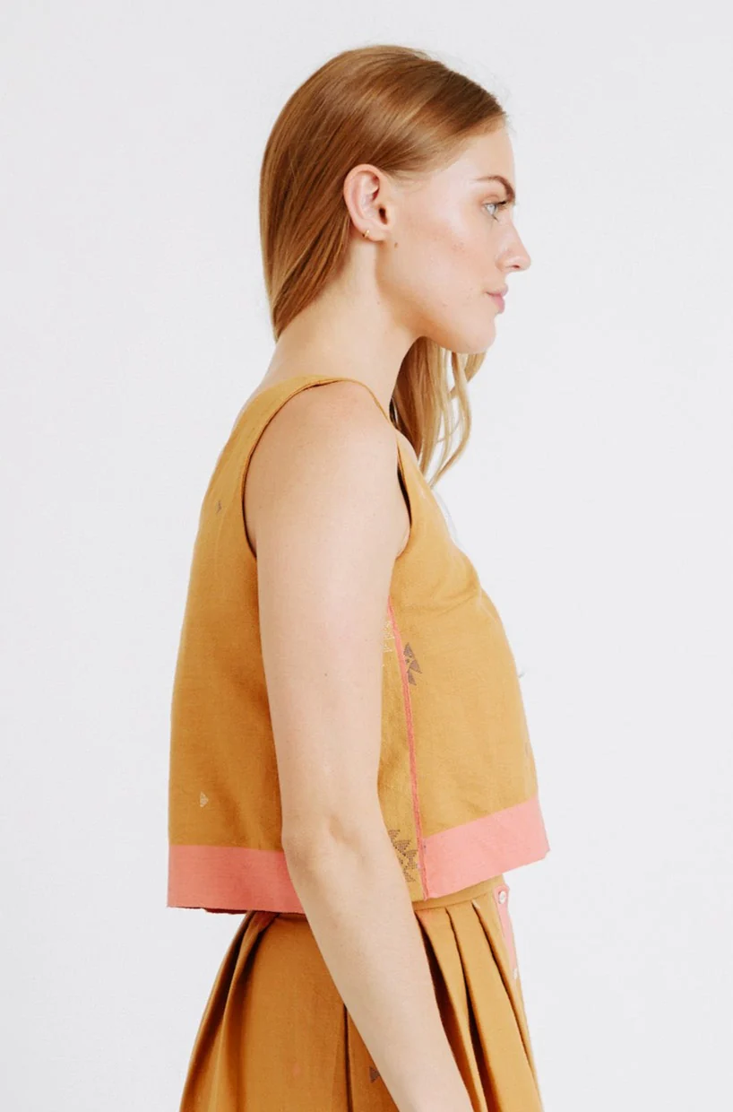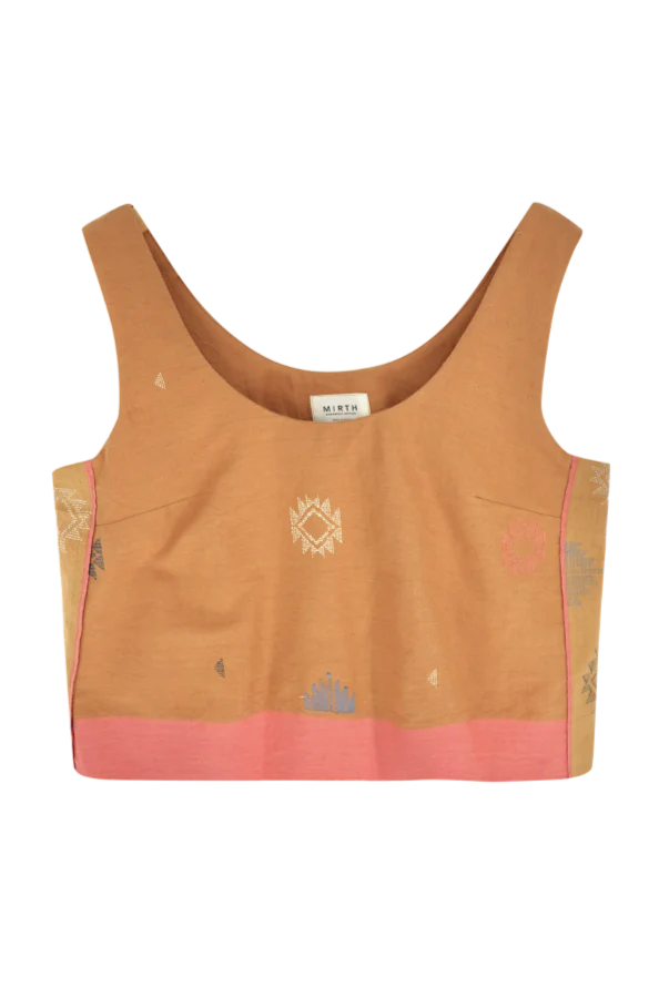 this casual silhouette is made sophisticated with delicate jamdani details and desert-inspired colors. pairs with our matching lucerne skirt.