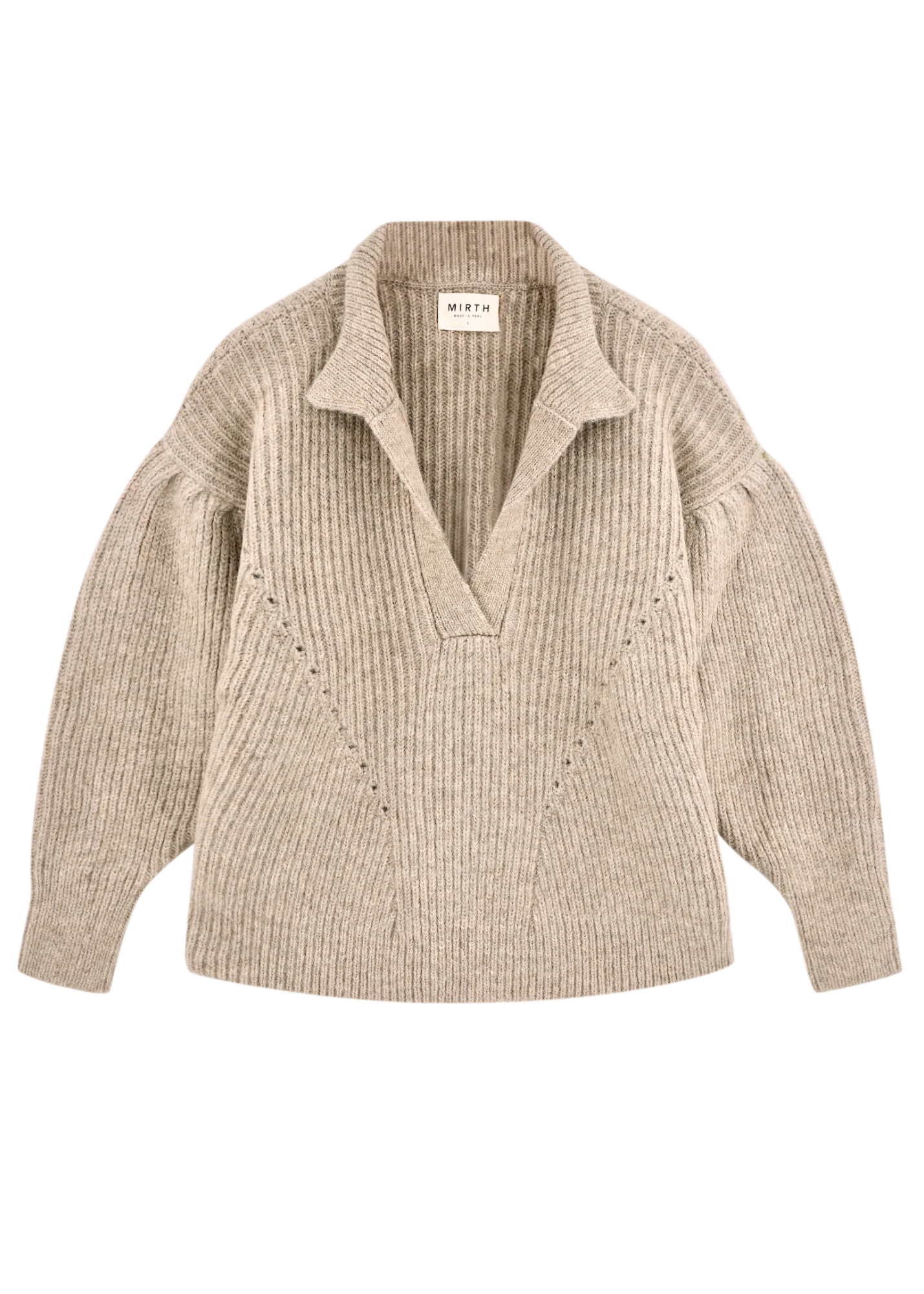 - Mid weight pullover sweater with deep neckline and collar