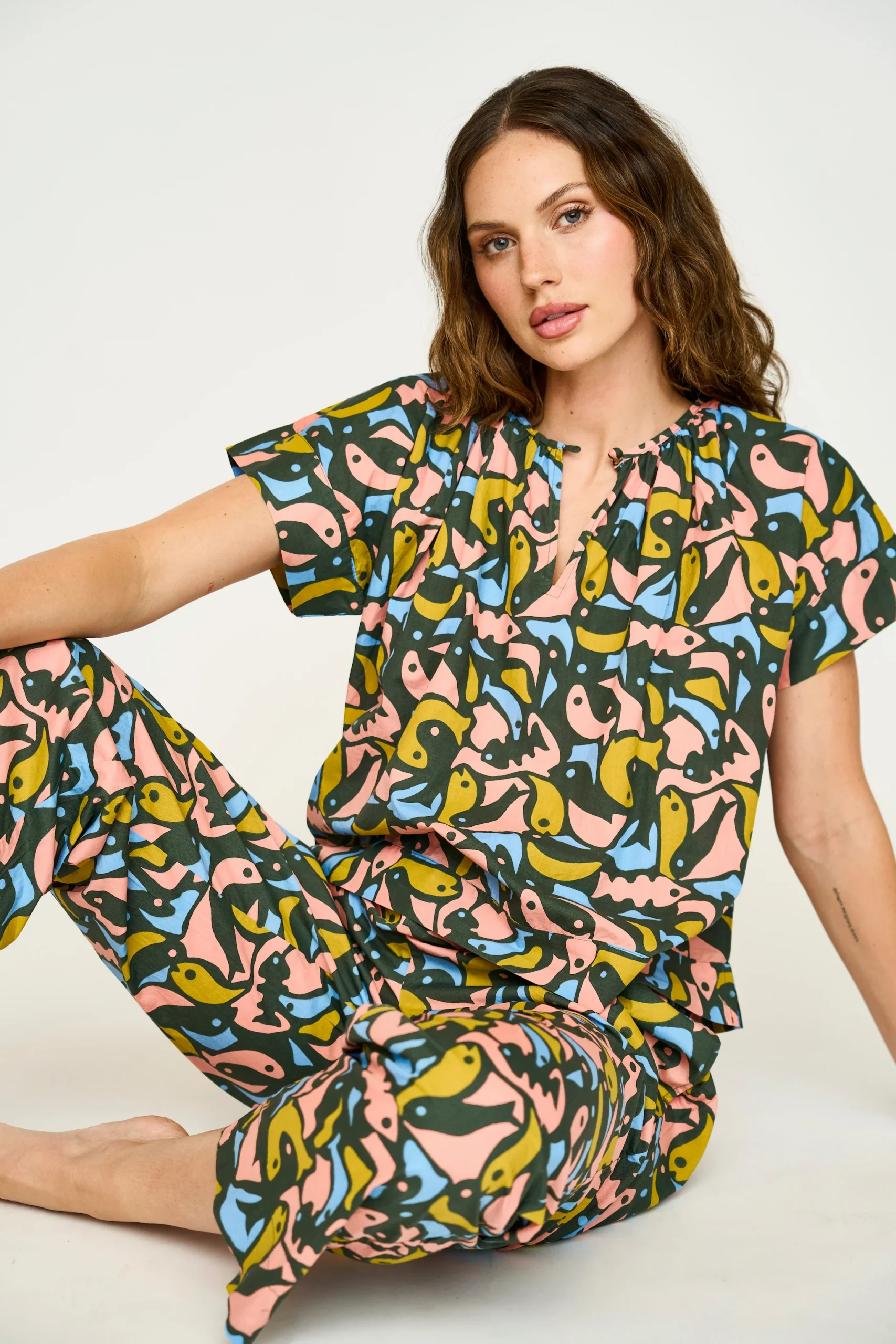 • Hand screen printed cotton pajama set
